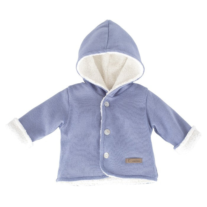 Abrigo Calamaro con Capucha de Punto y Borreguillo Suave – Color Azul Nude