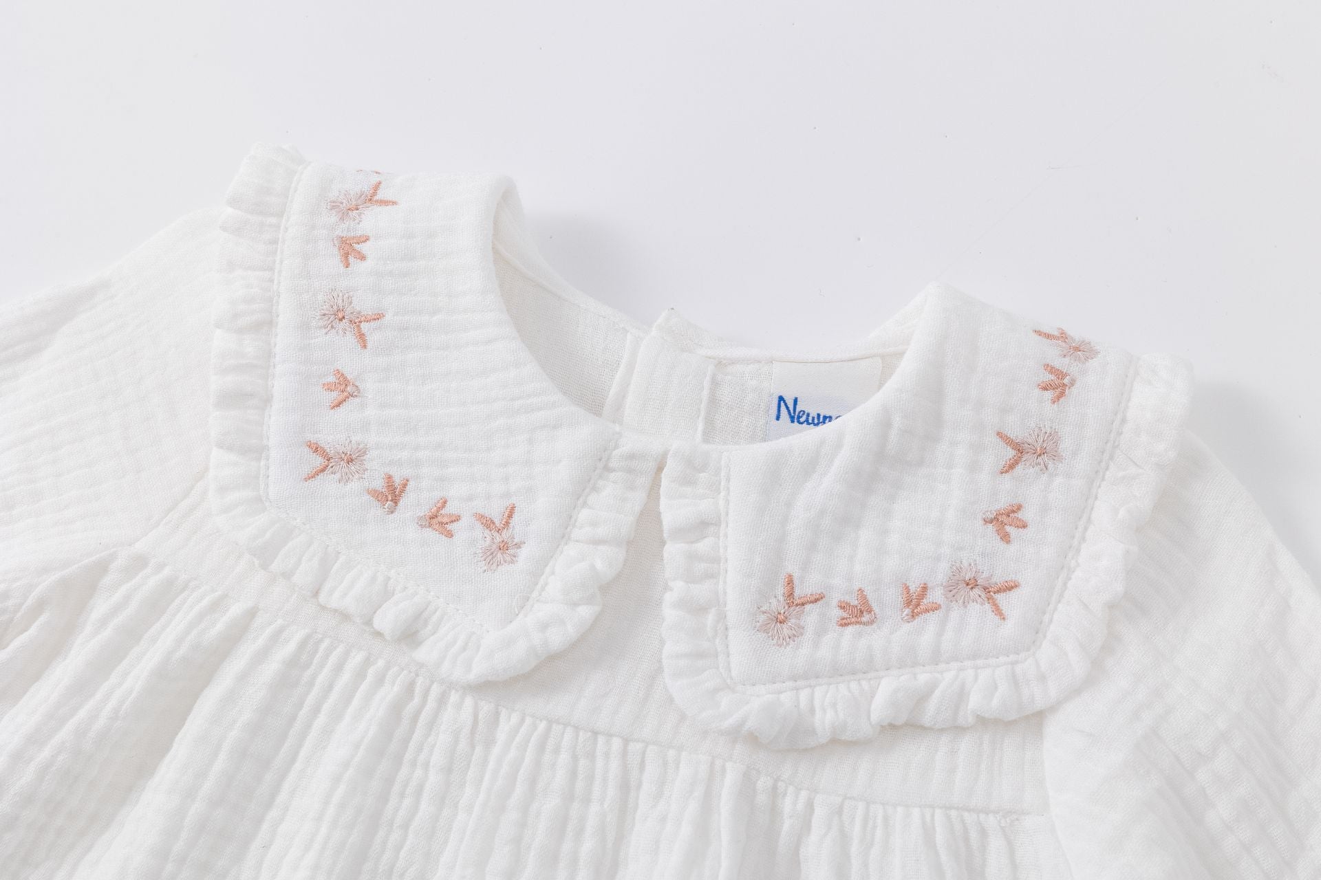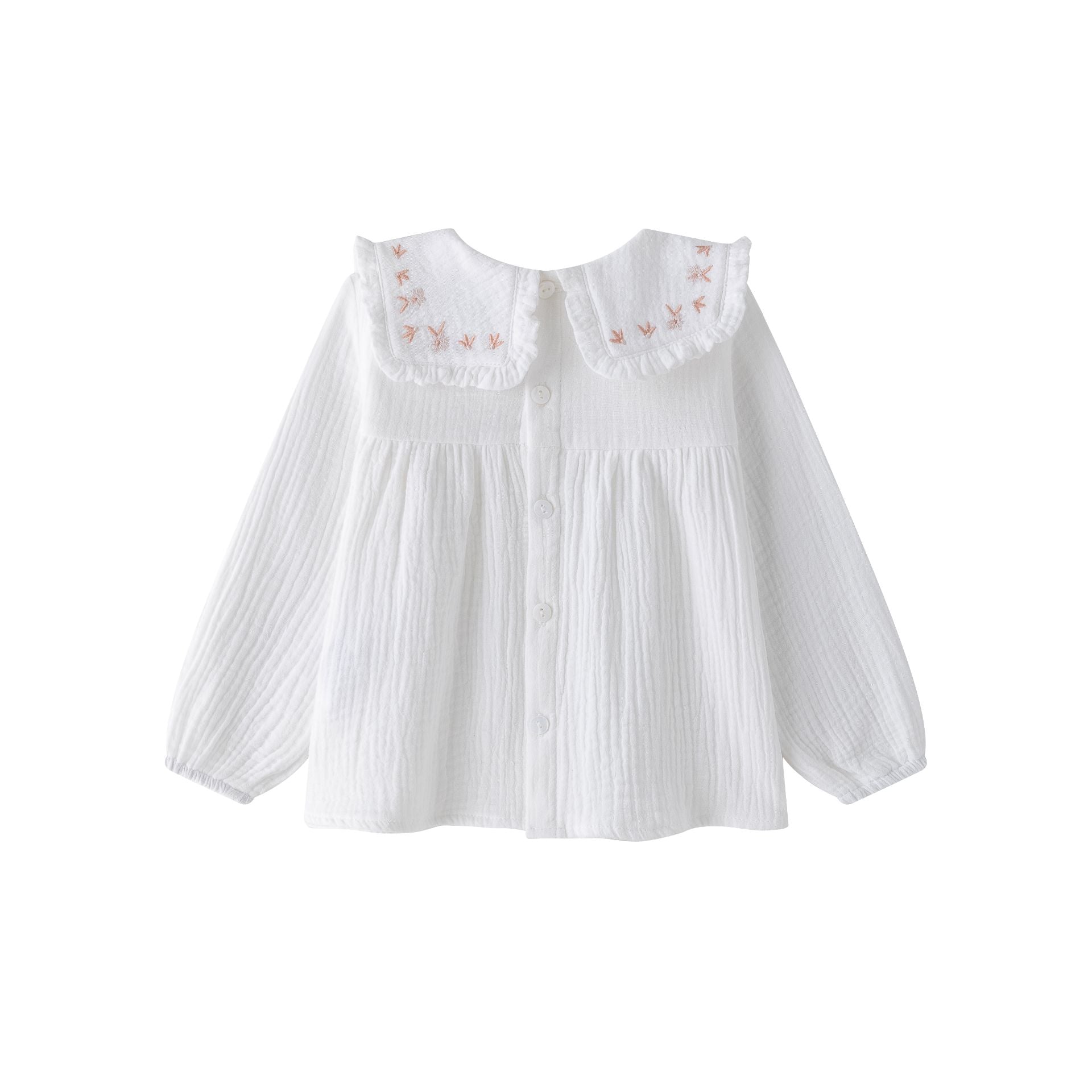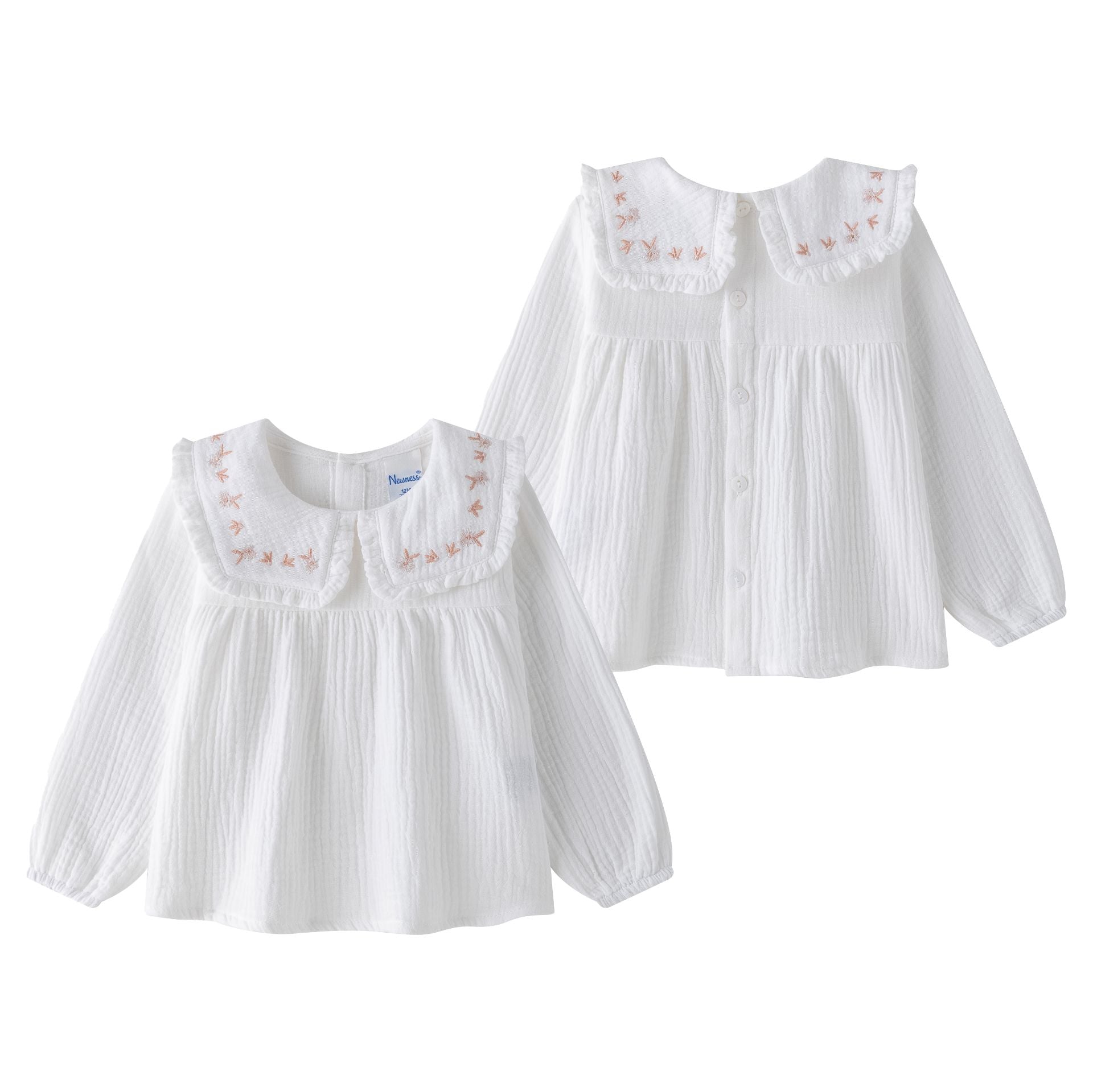 Elegante y cómoda blusa de bambula 100% algodón en color blanco de la marca Newness Kids, ideal para bebés y niñas. Fabricada con algodón suave y transpirable, es perfecta para proteger la piel sensible infantil y garantizar confort durante todo el día.